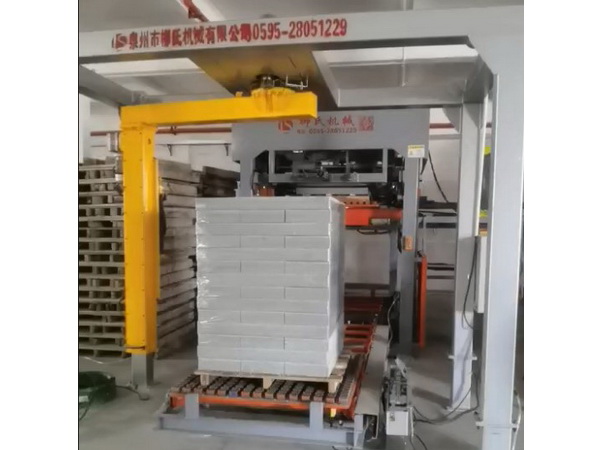 全自動(dòng)碼磚機(jī)打包機(jī),碼垛好的水泥磚塊可以穿箭打包機(jī),也可以纏繞膜打包,彩磚為了保留水份,磚質(zhì)感養(yǎng)護(hù)更好,纏膜后的磚制品還能降低破損率,不散包、不掉磚,纏繞穩(wěn)定牢固快速,高效節(jié)能