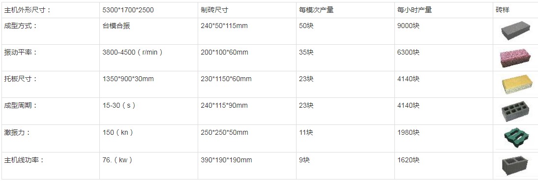 三、9-15全自動砂基透水磚機主要參數產能: