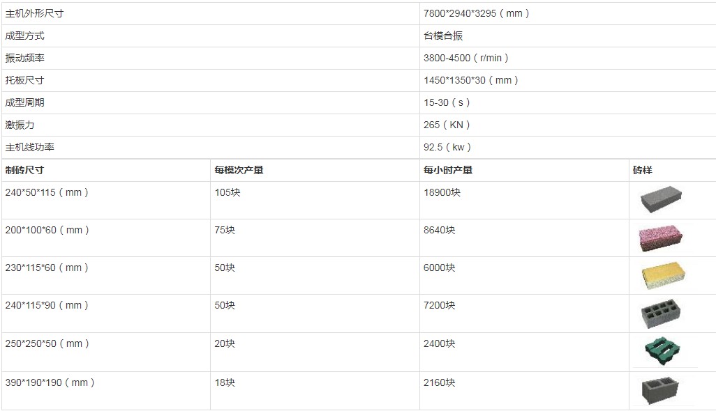 二、YH18-20高端伺服制磚機(jī)主要參數(shù):